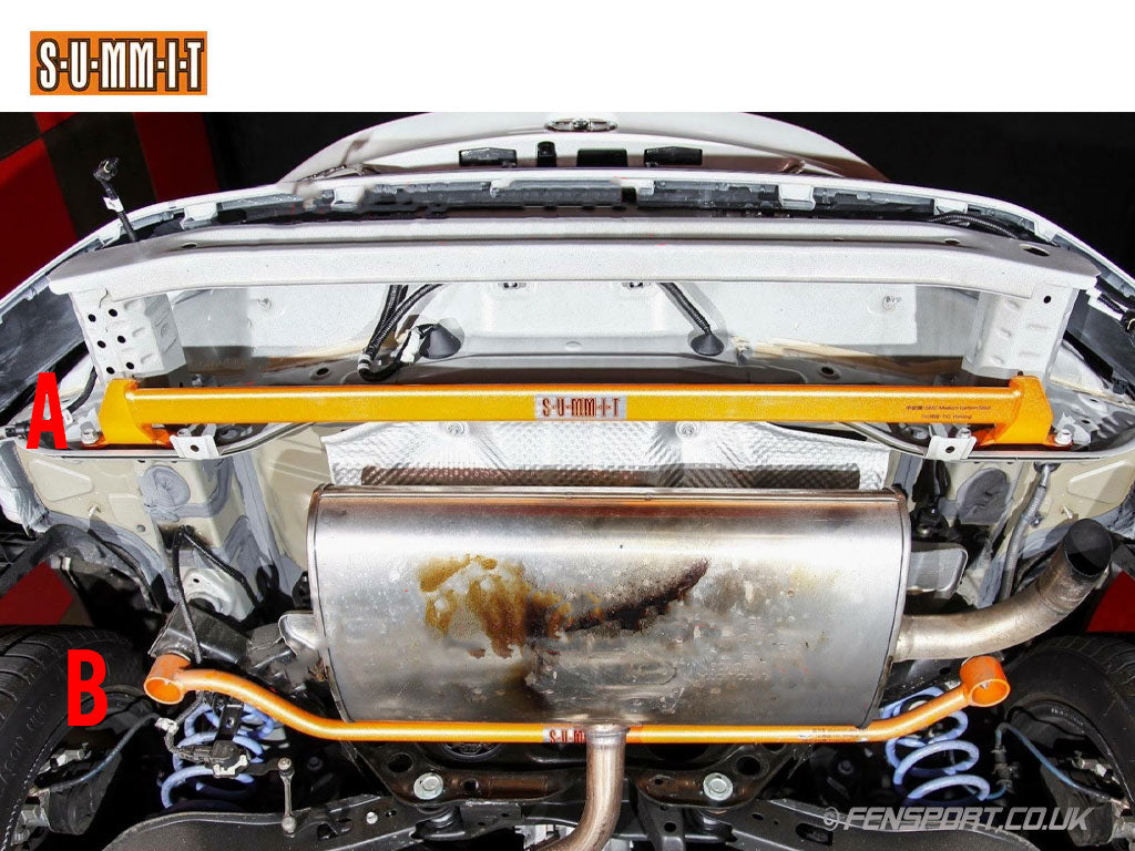 The Summit front strut tower brace improves chassis rigidity by reducing flex. By using monocoque aluminium triple tube shaft, the brace is not only lightweight but also exceptionally strong.