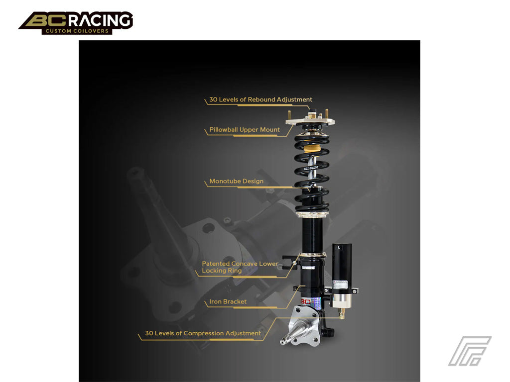 BC Racing 2 way adjustable coilovers are the external reservoir ER Series with separate compression and rebound damping adjustment.