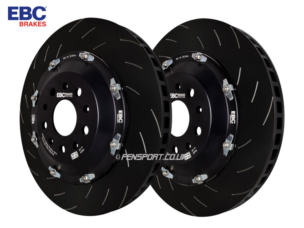 EBC Racing's Big Brake Kits represent the ultimate braking upgrade, replacing the vehicles original front brakes with high performance 6 piston alternatives and replacing the original brake rotor with a fully‐floating oversize 2‐piece rotor.