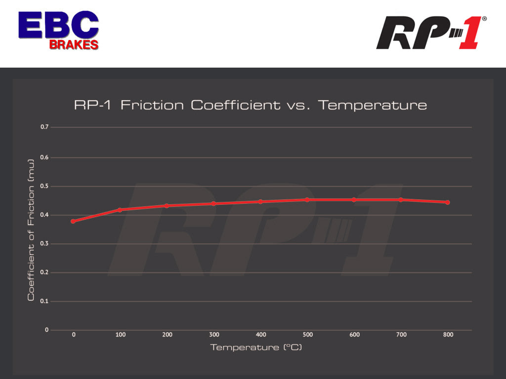 RP-1™ boasts a flat friction response averaging 0.45mu and is capable of operating at temperatures of up to 750 Degrees C without brake fade.