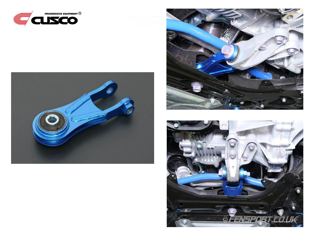 Designed as a direct replacement for the factory pitching stopper, the Cusco mount features a harder rubber bushing to suppress the amount of excess pitch movement on the engine during acceleration and deceleration.