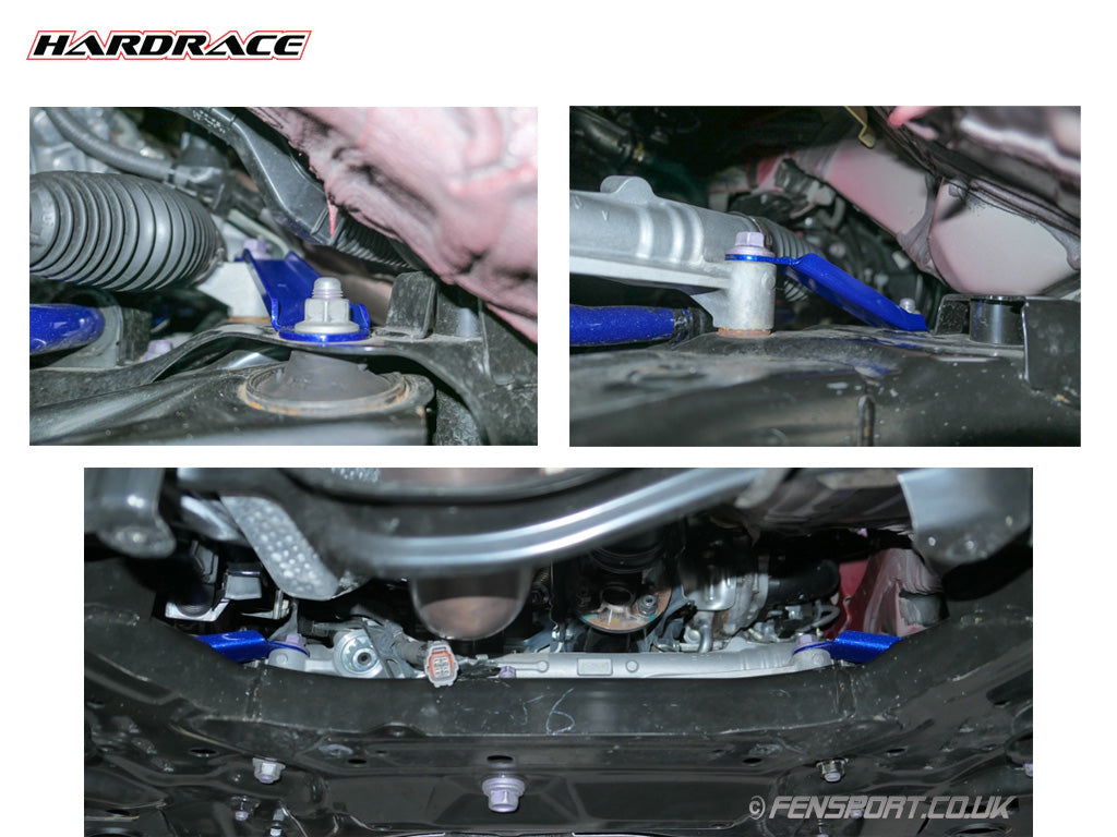 The Hardrace steering rack brace features high strength steel construction to reduce steering rack movement under hard cornering. By reducing unwanted movement the steering accuracy and response are improved.