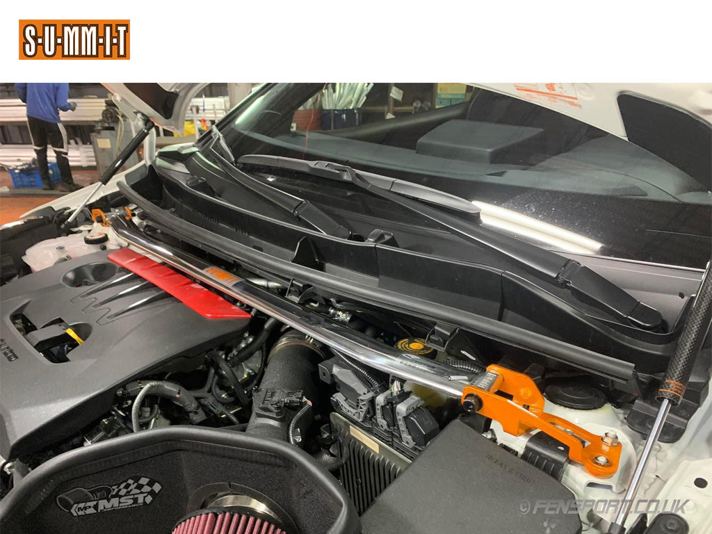 The Summit front strut tower brace improves chassis rigidity by reducing flex. By using monocoque aluminium triple tube shaft, the brace is not only lightweight but also exceptionally strong.
