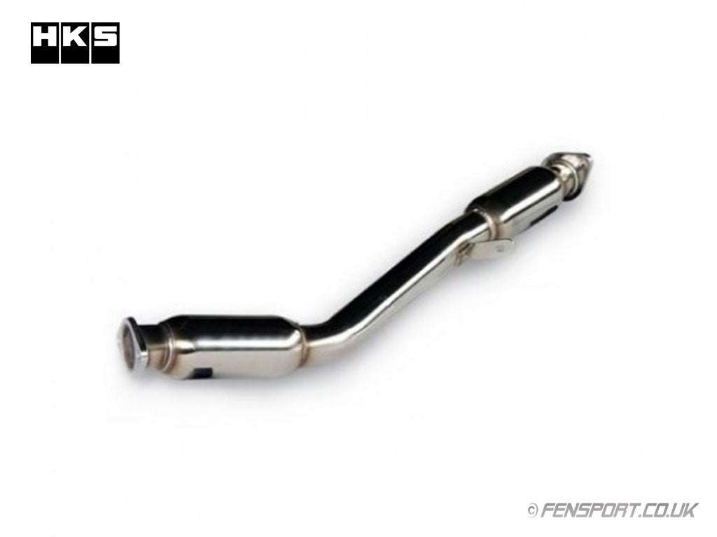 The HKS straight design front pipe includes 2 resonators to help reduce harsh exhaust sound.