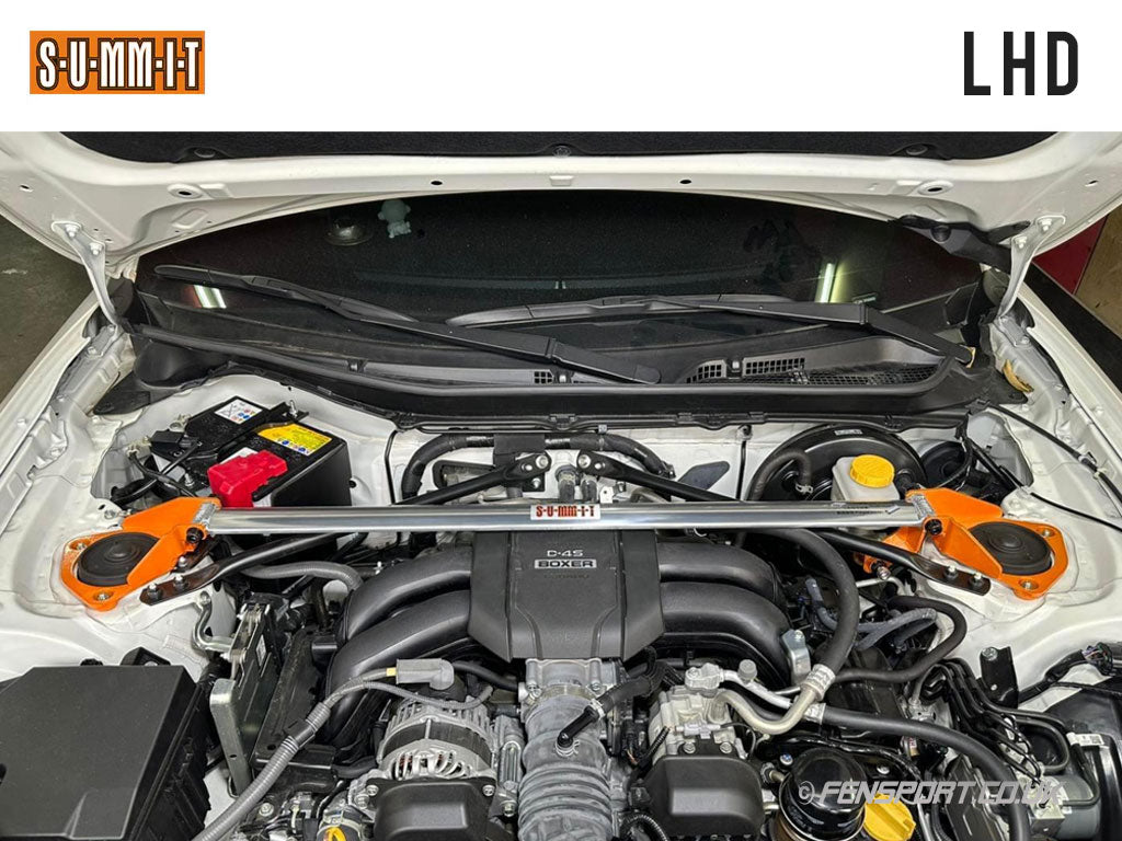 The Summit front strut tower brace improves chassis rigidity by reducing flex. By using monocoque aluminium triple tube shaft, the brace is not only lightweight but also exceptionally strong.