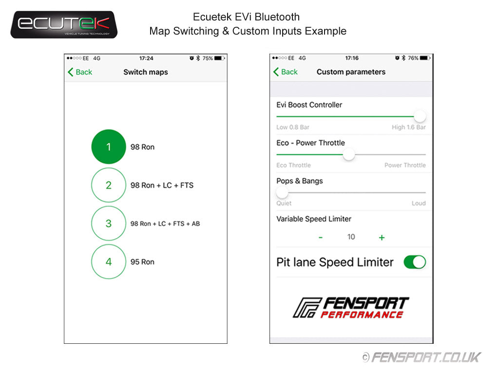 Used in conjunction with the ECU Connect app and an Android or Ios device, the Ecutek EVI-BT allows communication between the engine ecu and your phone or tablet, and maps can be adjusted directly from the device in real time.