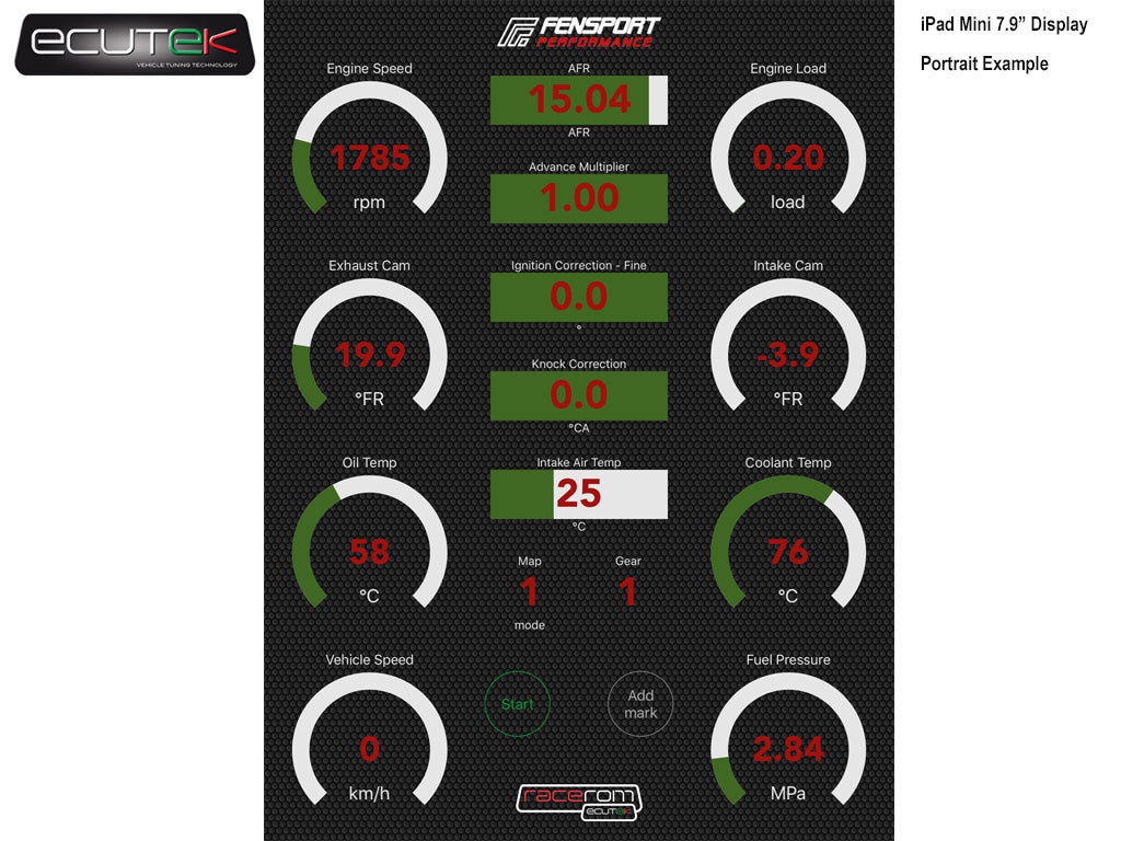 Using the app as an input to Custom Maps we can configure the ecu to perform live adjustments to many key tuning tables ... eg:Ignition, Fuel, Cam maps etc.