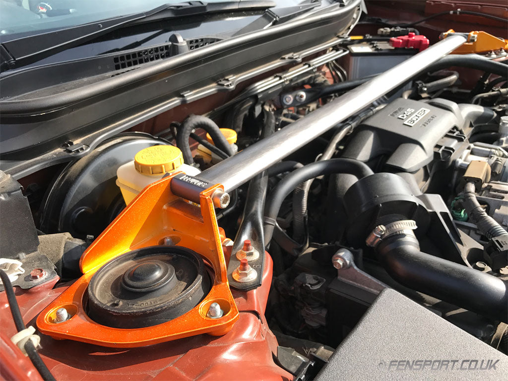 The Summit front strut tower brace improves chassis rigidity by reducing flex. By using monocoque aluminium triple tube shaft, the brace is not only lightweight but also exceptionally strong.